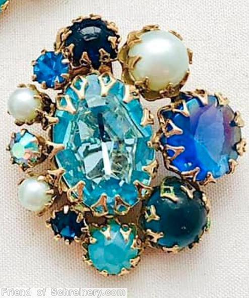 | brand: | SCHREINER | | style ID: | | | identification: | • book piece(s) in "Schreiner - Master of 20th-Century Costume Jewelry" by Carole Tanenbaum and Eve Townsend, page 77,101,126,127. • signed piece(s) EUCOI5-001, JWA3RW-001, GI1ZUJ-001, QRPM5G-001, PEC89D-001, 0WKL7W-001, XL8JWY-001, PFA2CQ-001, TF2D73-001, 35QZB8-001. | | structure: | 3 large oval cab domed radial triangle pretzel pin, small stone center, bordered | | design elements: | blue, aqua, faux pearl, goldtone, opaque baby blue | tracked pieces: | | | Submit one like this | Style *1VF0OD (scroll down to see related pieces and different styles in this series.) |