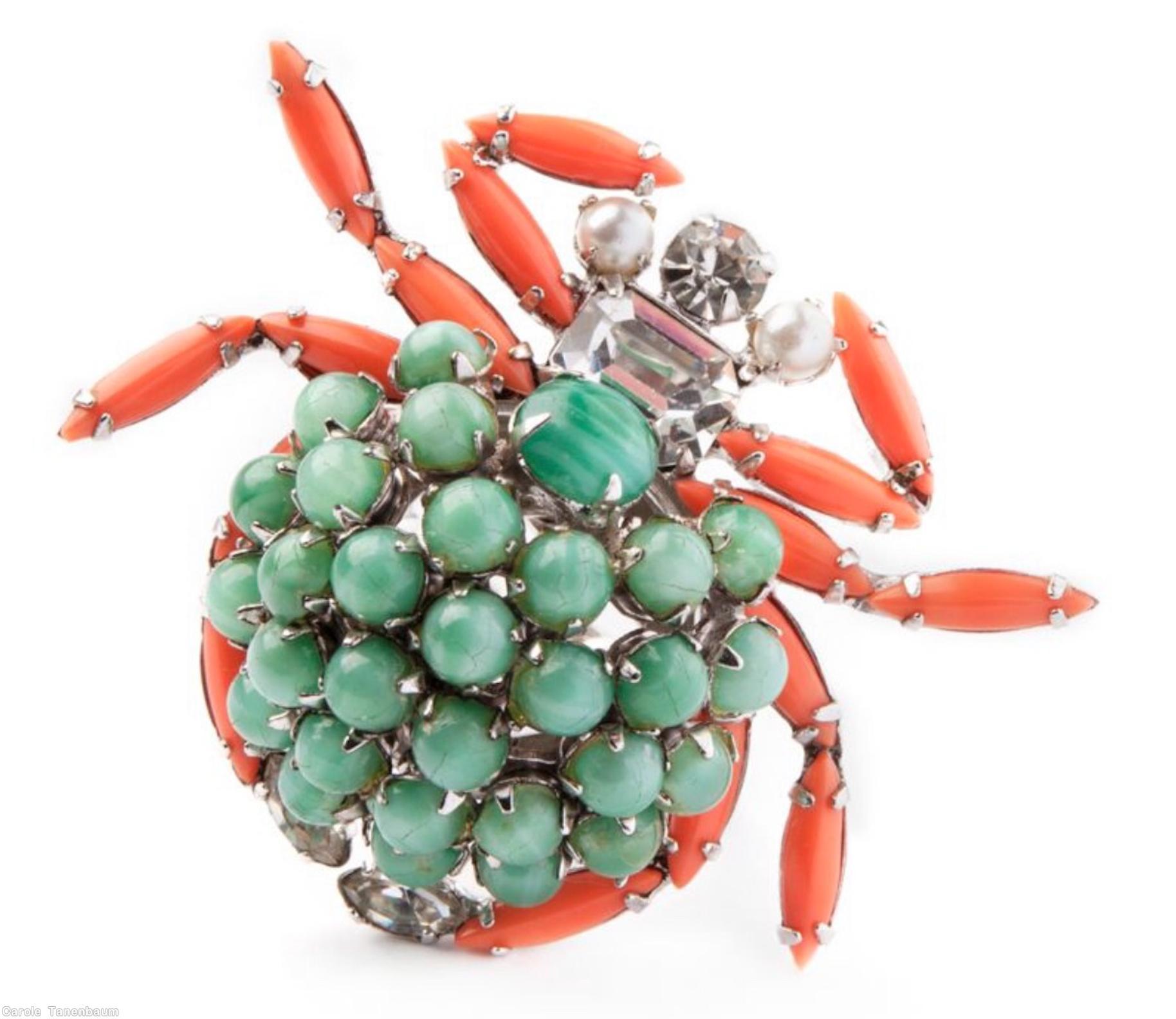 Schreiner spider ring moonglow small chaton smoky navette coral small chaton eye peridot small emerald cut goldtone jewelry
