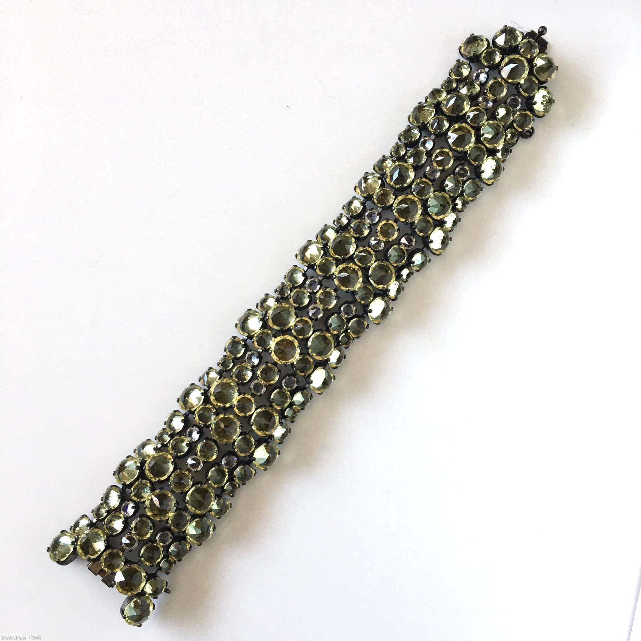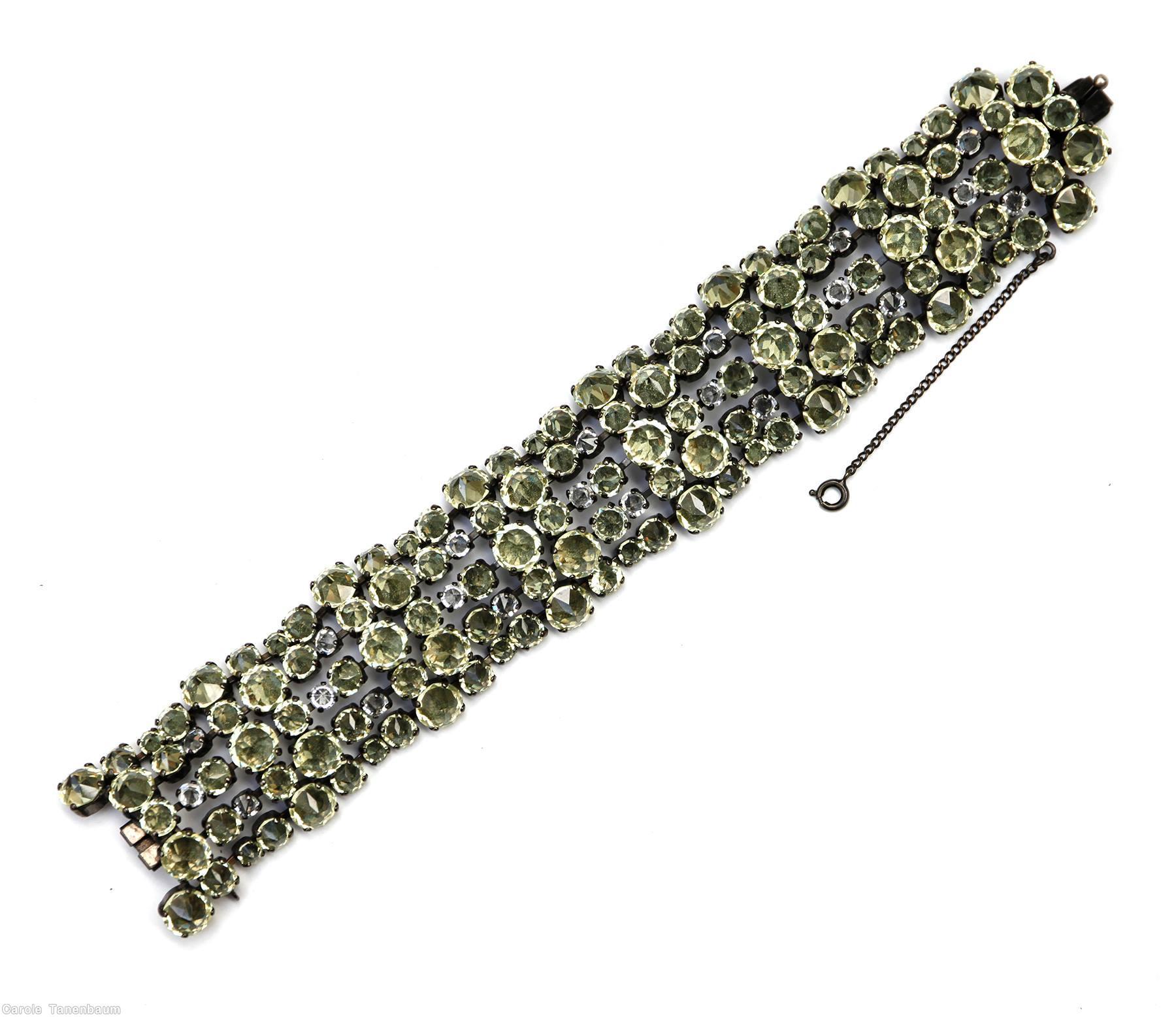 Schreiner 5 row varied size inverted stone wide bracelet smoke jewelry
