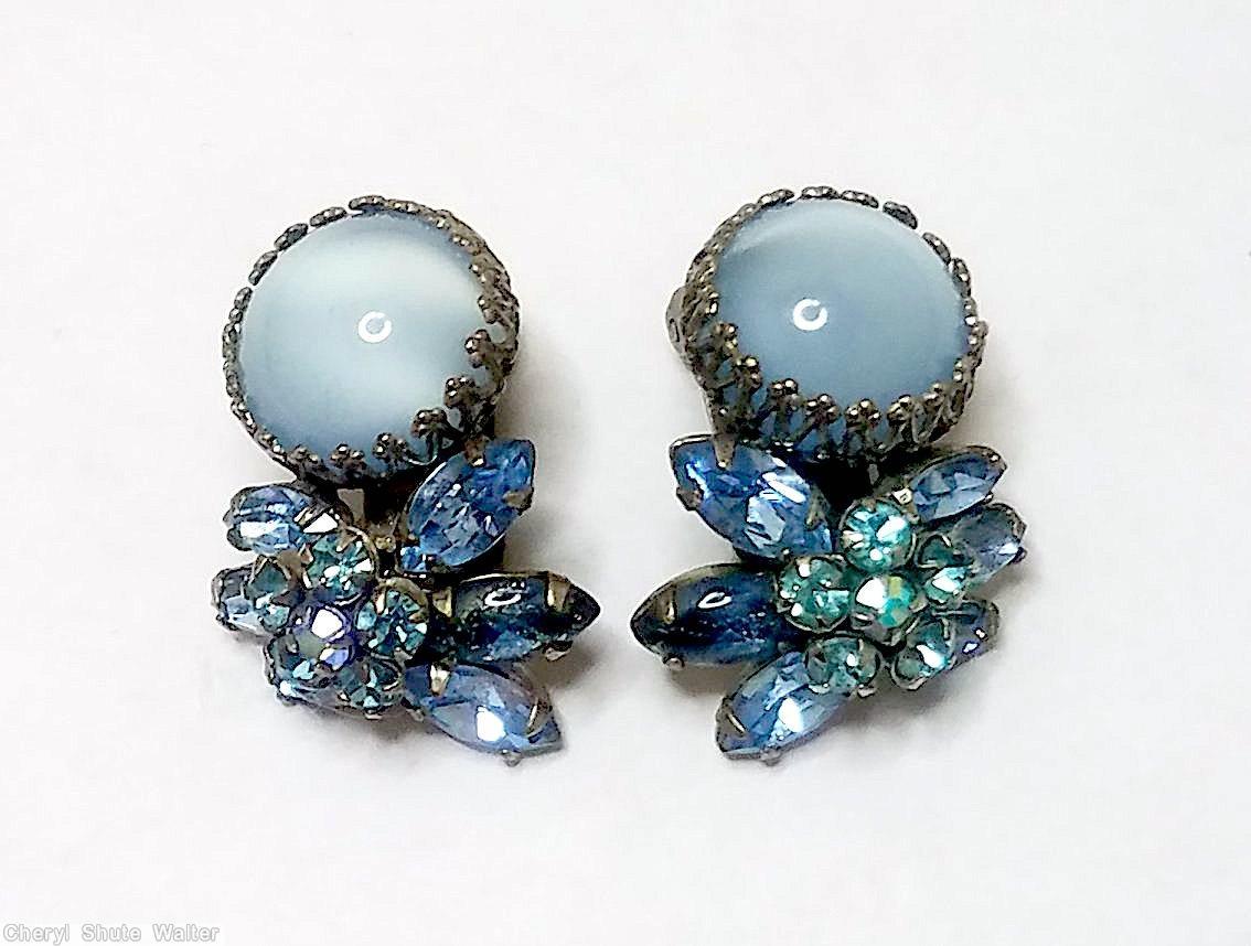 brand: SCHREINER style ID: identification: • Signed piece(s) with the same structure: JN11XN-001 structure: square radial pin, 4 large chaton corner, 4 clustered flower, small chaton center design elements: pale blud moonglow, bicolor blue white navette, ab chaton, crystal chaton tracked pieces: Submit one like this Style *JN11XN (scroll down to see related pieces and different styles in this series.)