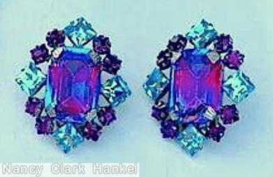 bicolor ruby clear aqua large emerald cut, purple square stone, clear aqua stone