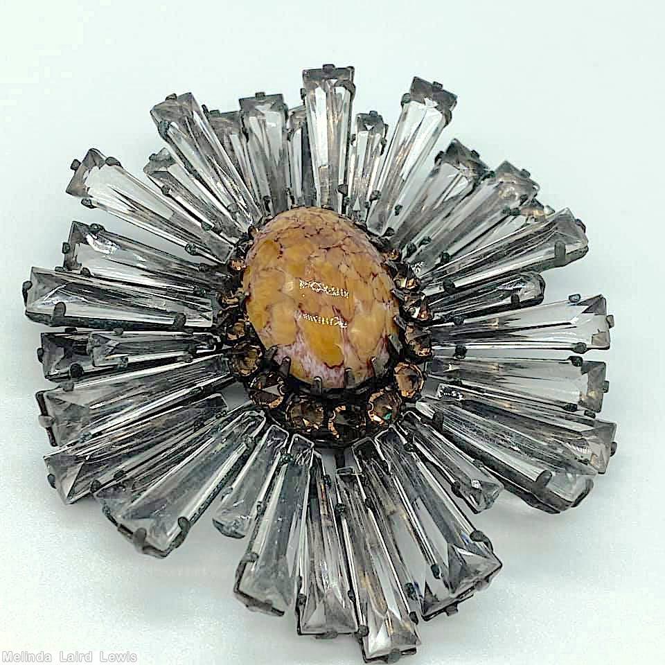brand: SCHREINER style ID: identification: • book piece(s) in "Schreiner - Master of 20th-Century Costume Jewelry" by Carole Tanenbaum and Eve Townsend , page 18,80,81. • book piece(s) in "Rhinestones!" by Nancy N. Schiffer , page 22,91,107. • signed piece(s) LU68HG-001 , HA7ISF-001 , GCDZDQ-001 , F68YG6-001 , BS1HVO-001 , VY6R1Q-001 , O6VO5D-001 , SNCAYK-001 , M4WWUL-001 , EJOEUI-001 . structure: giant ruffle, keystone, large oval center design elements: emerald keystone, baroque pearl large oval center, crystal tracked pieces: Submit one like this Style *M4WWUL (scroll down to see related pieces and different styles in this series.)