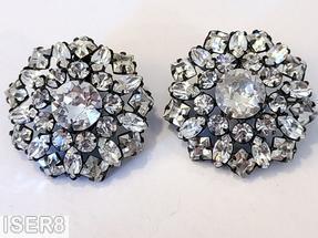 round radial earring, 9 surrounding small chaton, 9 small square stone, 9 small navette
