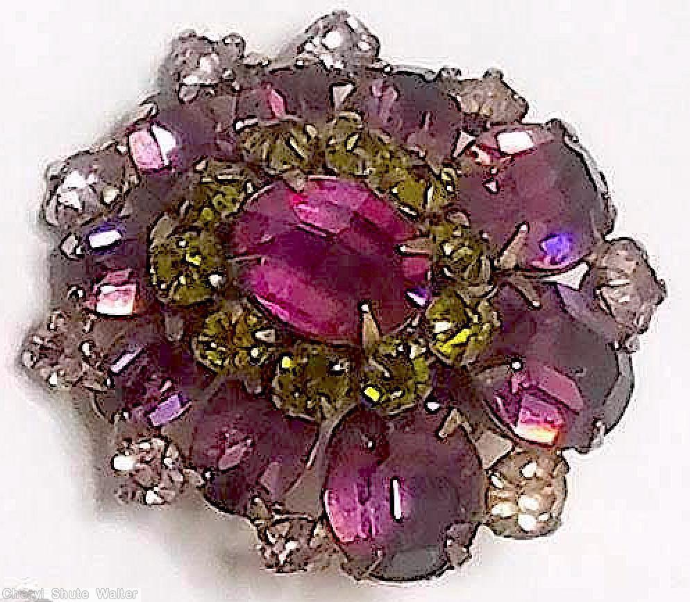 large oval center teardrop shaped pin, varied size oval cab, inverted stone, 2 rounds around center
