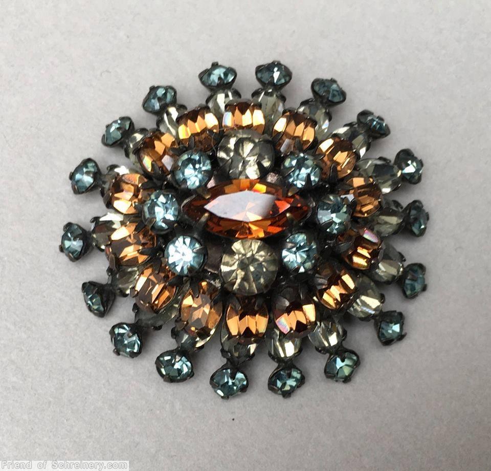 18 branch domed oval pin, hook eye, oval center, 6 surrounding chaton