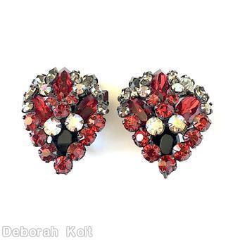 2 level leaf shape earring, top level, arch of 11 stone, bottome level, 3 large navette, 2 navette