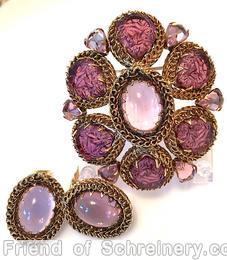 brand: SCHREINER style ID: identification: This piece is Verified. Editors are working on the references structure: 6 teardrop cracked ice stone radial oval pin, large oval cab center, metal chain border, 6 small teardrop design elements: plum cracked ice large teardrop, pale plum, goldtone tracked pieces: Submit one like this Style *2PZKDG (scroll down to see related pieces and different styles in this series.)