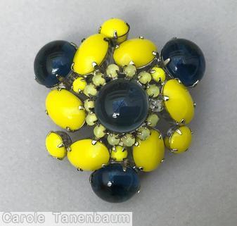 swirled domed double triangle pin, 6 large surrounding stone, 5 floral branch pin, faceted teardrop