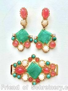 brand: SCHREINER style ID: identification: This piece is Verified. Editors are working on the references structure: 3 part large greek key square stone dangle earring, large oval cab top, chaton middle design elements: jade greek key square stone, moonglow white chaton, marbled pink, goldtone tracked pieces: Submit one like this Style *4GK3SM (scroll down to see related pieces and different styles in this series.)
