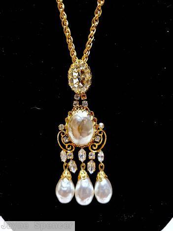 large oval baroque faux pearl, large oval faceted crystal, goldtone
