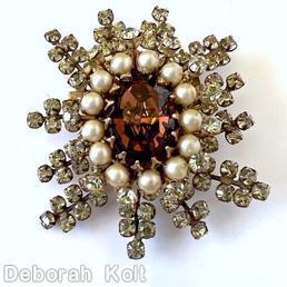 brand: SCHREINER style ID: identification: • book piece(s) in "Schreiner - Master of 20th-Century Costume Jewelry" by Carole Tanenbaum and Eve Townsend , page 33. editor note: Number of faux pearls around center stone is 13 comparing to book piece.