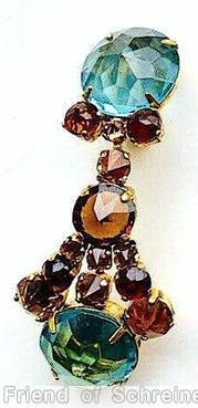 ice aqua large faceted chaton, brown inverted small chaton, goldtone