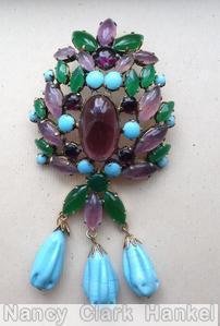 dahlia pin, large oval cab center top down 3 dangle