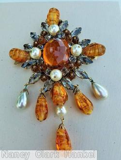 faux pearl, smokey, clear marbled honey, gold tone