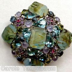5 large emerald cut domed swirled radial pin, 4 flower head, 8 teardrop