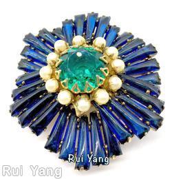 brand: SCHREINER style ID: identification: This piece is Verified. Editors are working on the references structure: 2 level 3 group of 5 keystone pin, large round cab center stone, 12 surrounding small chaton design elements: marina blue keystone, faux pearl, green chaton center, goldtone tracked pieces: Submit one like this Style *T4IAR7 (scroll down to see related pieces and different styles in this series.)