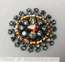 18 branch domed oval pin, hook eye, oval center, 6 surrounding chaton